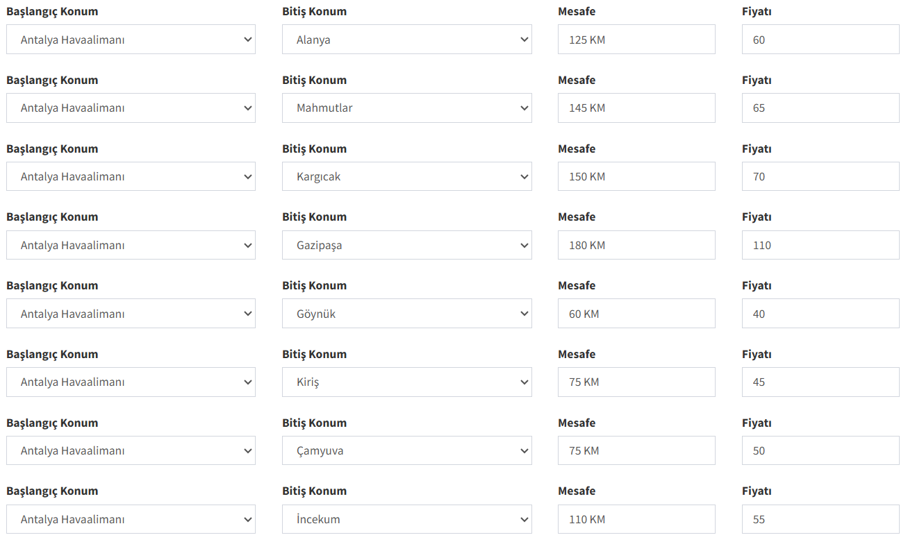 Genel Fiyatlandırmamız aşağıdaki gibidir.